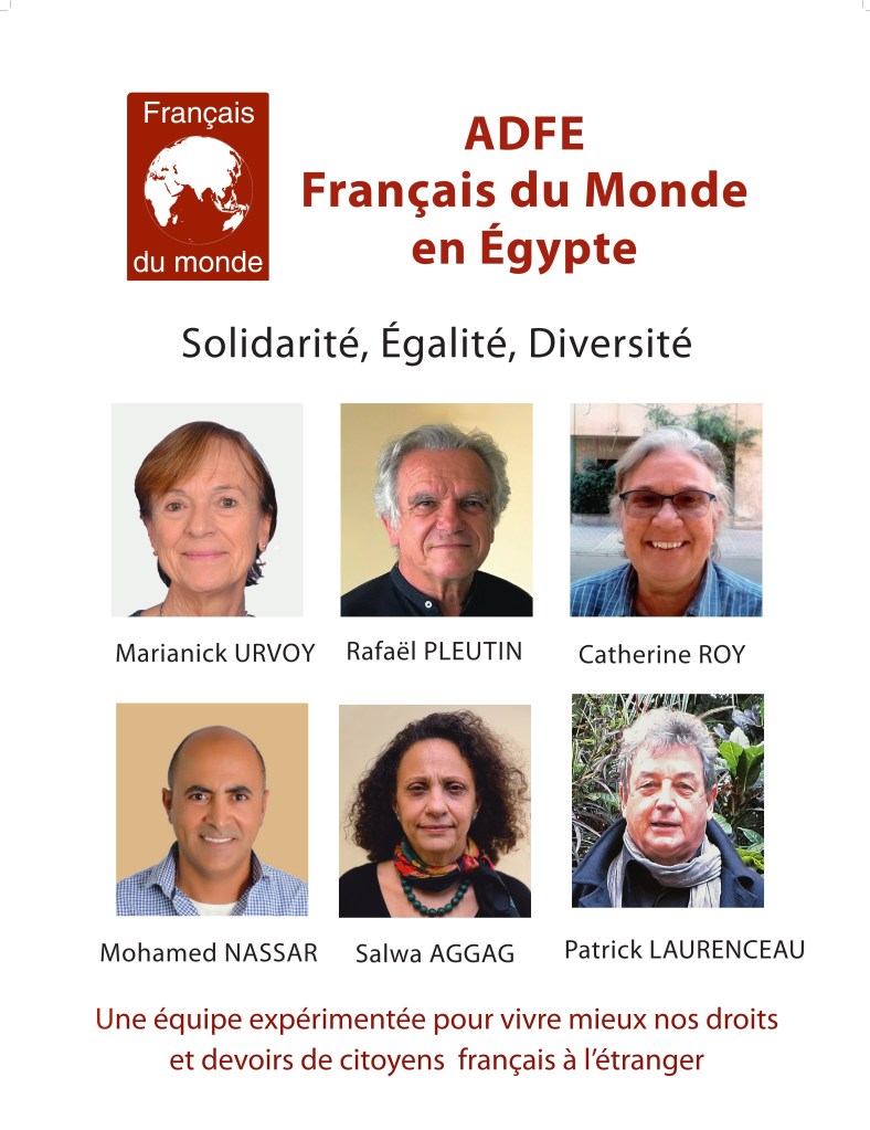 En Egypte, 3 conseillers consulaires doivent être élus. Et notre association propose bien sûr sa liste de candidats avec à sa tête Marianick Urvoy, conseillère consulaire depuis 2014 et toujours aussi active auprès de nous tous. D’autres candidats expérimentés l’accompagnent, tous vivant en Egypte depuis plusieurs années et connaissant parfaitement les réalités locales.