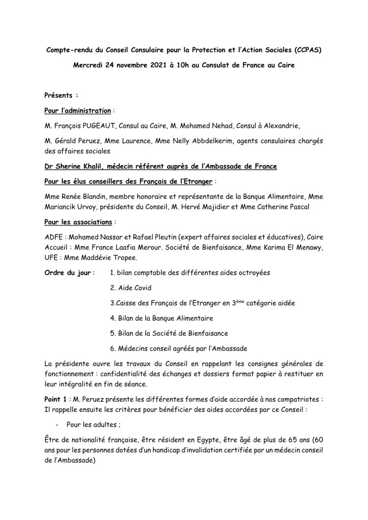 Compte-rendu du Conseil Consulaire pour la Protection et l’Action Sociales (CCPAS) – 24 novembre 2021 Partager : Cliquez pour partager sur Facebook(ouvre dans une nouvelle fenêtre) Facebook Cliquez pour partager sur WhatsApp(ouvre dans une nouvelle fenêtre) WhatsApp Cliquer pour envoyer un lien par e-mail à un ami(ouvre dans une nouvelle fenêtre) E-mail J’aime chargement… Articles similaires